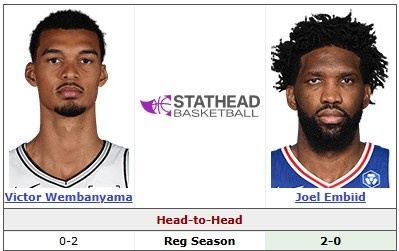据统计,恩比德和文班亚马生涯此前交战2次,恩比德全部获胜。